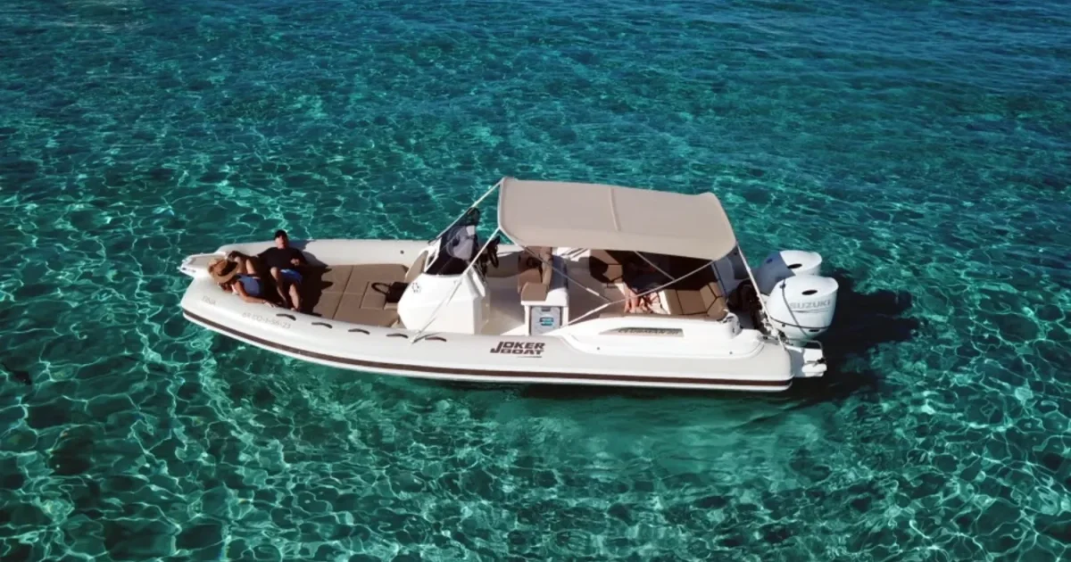 The Joker Clubman 28 "Tina" is one of the bases on which the prestigious Italian shipyard builds its entire new Clubman range. With very careful and balanced environments, this RIB achieves exceptional comfort. Its solarium offers a generous space to sunbathe with great ease. The rear deck consists of a large sofa with a U-shaped dinnette, which can be transformed into a picnic table or an extra solarium. The pilot post offers exceptional navigation and is equipped with 7 "GPS/Plotter/Depth Sounder Garmin with tactile screen, as well as Fusion stereo with Bluetooth connection. The powerful 4-stroke 200 hp twin Suzuki engines will make us reach maximum speeds; above 40 knots, but it is in its incredible 30 knots of cruising speed where we will find its best performance. Its equipment also has electric windlass anchor, shower, bathing platforms and a large bimini sunshade.